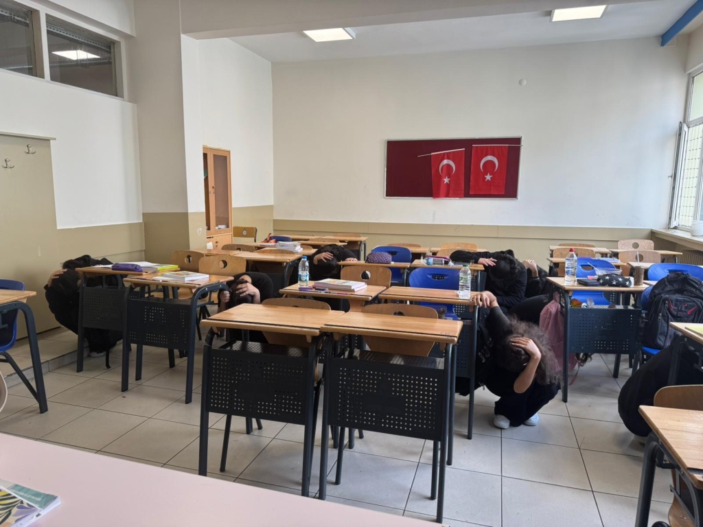 Okul genelimizde önce tüm sınıflarımızda “Afet Farkındalık Eğitimi” izlendikten sonra Çök-Tutun-Kapan ve sonrasında da Personel Tahliyesi Tatbikatı gerçekleştirdik.
